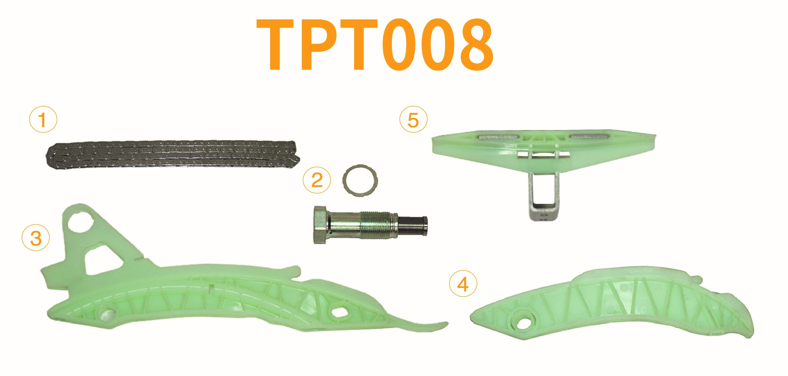 時規修理包 TIMING KIT TPT008-01 1131 753 4784 TIMING CHAIN TPT008-02 1131 759 7895 TENSIONER TPT008-03 1131 756 8241 GUIDE TPT008-04 1131 753 4833 GUIDE TPT008-05 1131 754 6697 GUIDE