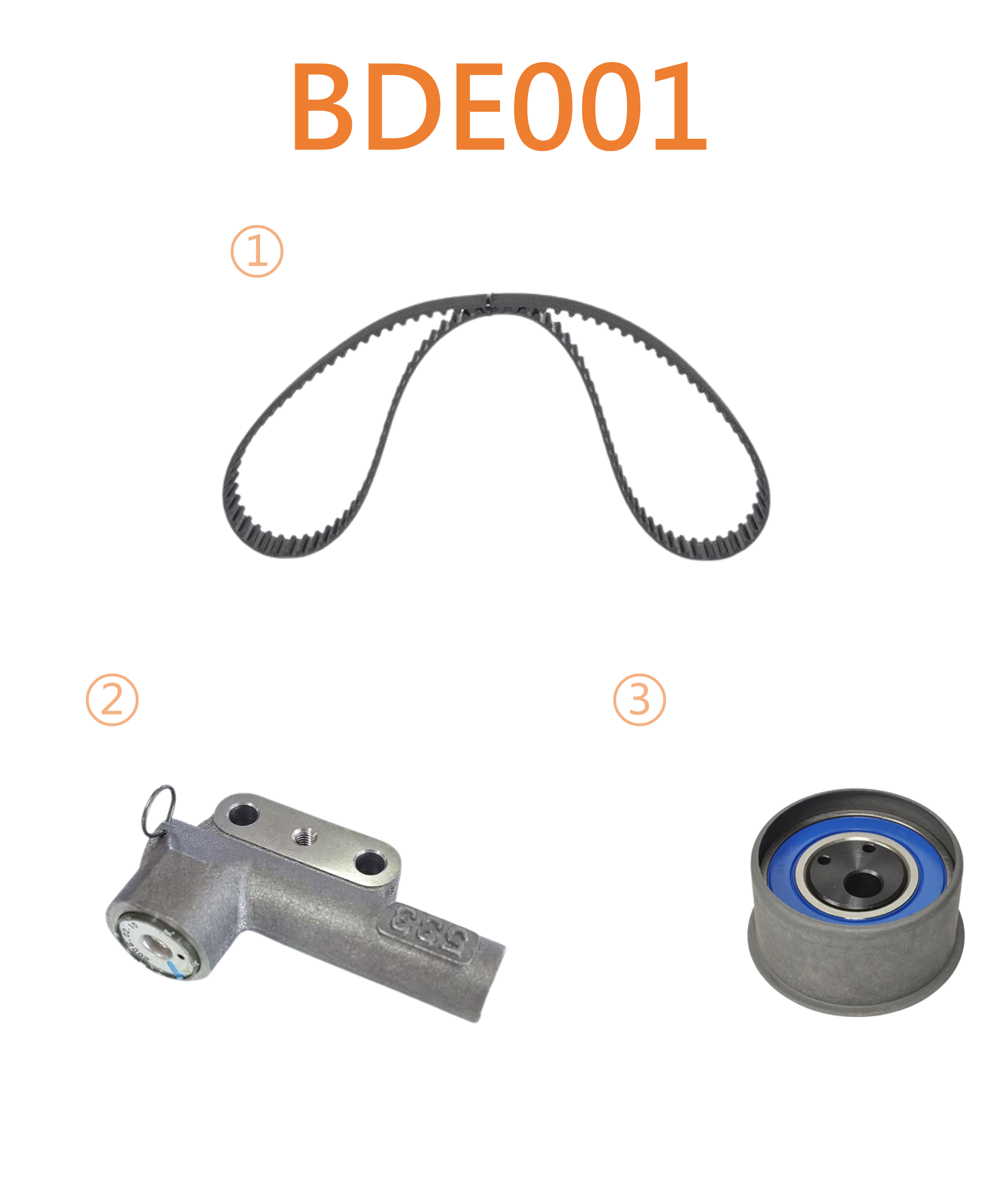 皮帶組 BELT KIT BDE001-01 MD133116 TIMING BELT 151HP29 BDE001-02 MD164533 ADJUSTER BDE001-03 MD129355 TENSIONER